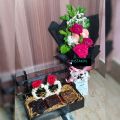 This women special gift package includes a box of brownies, fresh flowers bouquet and a pair of floral bangles.