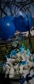 A beautiful box containing premium flowers with a hot air balloon on top with blue theme.